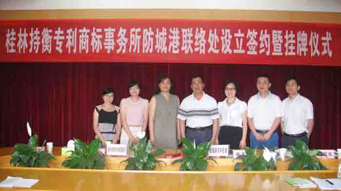 2012年5月3日下午3點,桂林市持衡專利商標事務所有限公司駐防城港聯(lián)絡處簽約掛牌儀式隆重舉行,我所馬所長﹑防城港市科技局黨委書記韋書記﹑黃局長﹑龍副局長﹑各科室科長以及防城港日報社記者紛紛出席本次掛牌儀式。