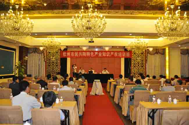 7月2日上午9:00,2013年欽州市知識產權系列培訓班之欽州市坭興陶特色產業(yè)知識產權培訓班在欽州市恒商大酒店四樓會議室舉行。參加此次培訓班的人員有:自治區(qū)知識產權局法律事務處調研員祖曉光、欽州市科技局副局長黃岳聯、桂林市持衡專利商標事務所有限公司的經理馬蘭女士和欽州市40家坭興陶企業(yè)代表以及數名國家級、省級、市級坭興陶大師。