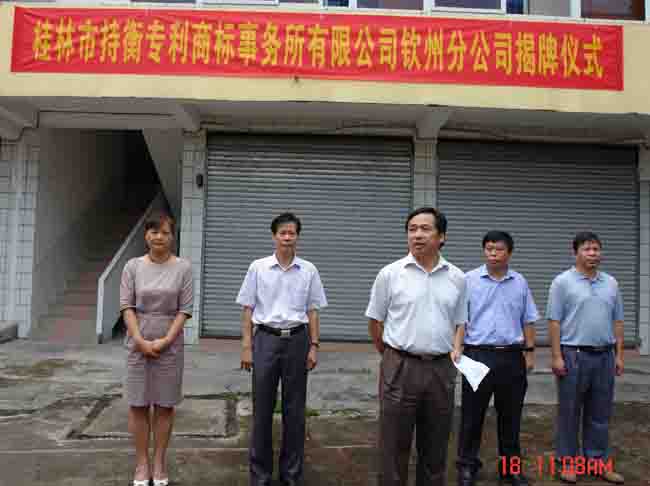 2013年8月18日上午9點(diǎn),我公司在欽州市科技局的大院內(nèi)舉行了“桂林市持衡專(zhuān)利商標(biāo)事務(wù)所有限公司欽州分公司揭牌儀式”,參加此次活動(dòng)的有:欽州市科技局局長(zhǎng)陳汪局長(zhǎng)、黃岳聯(lián)副局長(zhǎng)、方農(nóng)業(yè)副局長(zhǎng)、市科技局全體干部職工、我公司總經(jīng)理馬蘭女士及我公司之欽州分公司的全體員工。此次揭牌儀式由欽州市科技局黃岳聯(lián)副局長(zhǎng)主持。